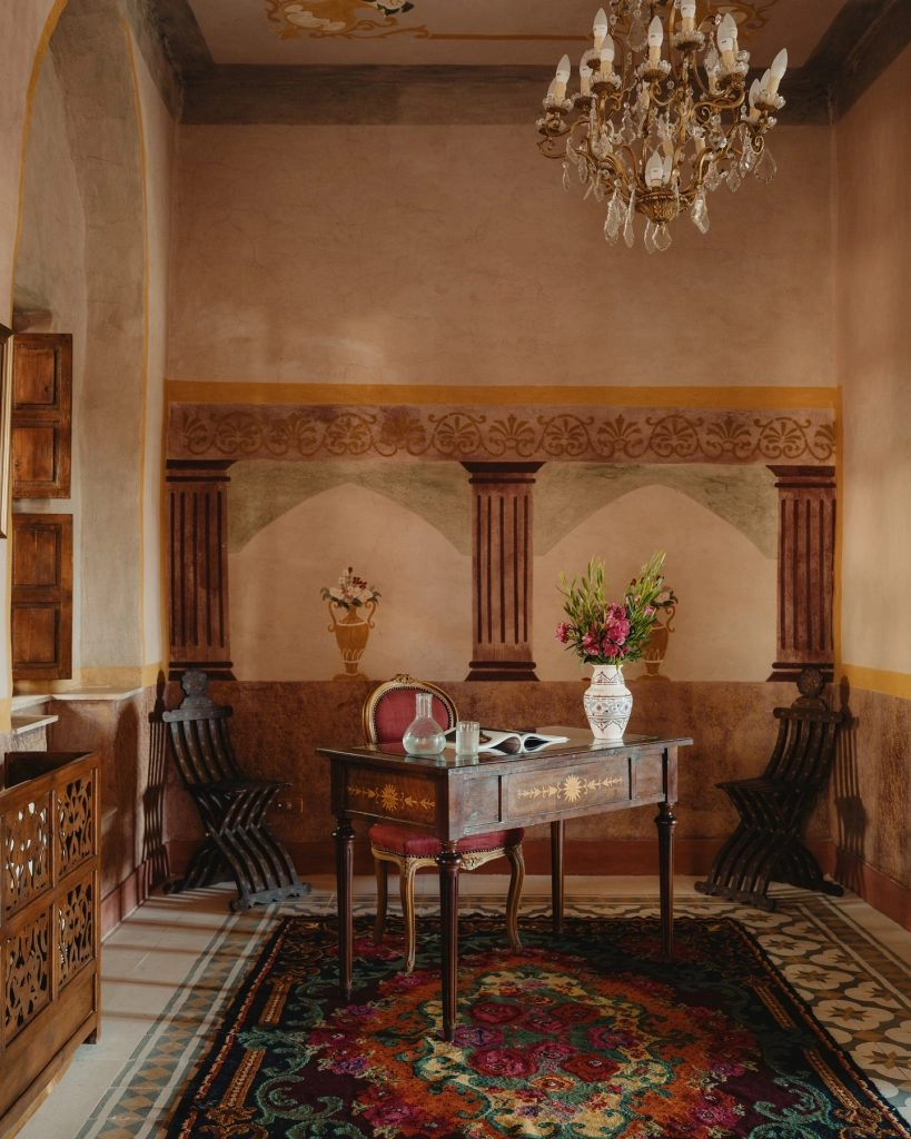 No two rooms at Al Moudira are the same. Like, literally. Each of the 54 suites has its own thing going on — one might have a jewel-toned dome, another a mother-of-pearl bed, or hand-painted tiles that make you feel like you woke up inside a Moroccan soap opera. Zeina sourced pieces from souks across the region, and it shows. Of course, there’s a lot of velvet. There are also lanterns. There are wardrobes that might be Narnia portals (no promises). And if you’re rolling deep (or just really into privacy), ask about Zeina’s old villa. It’s a five-bedroom dream, with its own gardens and secret corners, perfect for writing your memoirs, planning a coup, or just hiding from emails.