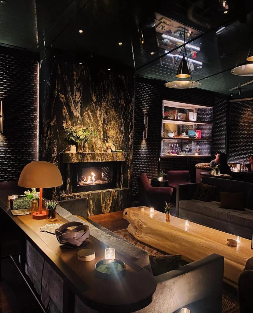A top fireplace in NYC is a secret fireplace. Spygold cocktail lounge beneath Greywind in Hudson Yards has a cozy fireplace that you can enjoy with a couple of your closest friends. Because it is subterranean, the dimness lends well to an intimate vibe, with velvet couches surrounding communal tables. Drinks are also top-notch here.