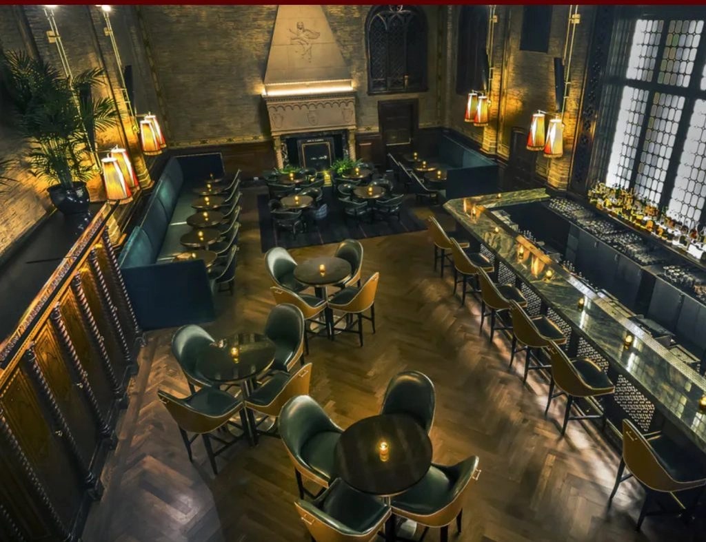 The fireplace at The Campbell is a fireplace with history, which has been around since 1923. Originally the private office of financier John W. Campbell, they just don’t make fireplaces, or buildings for that matter, like they used to. This is an ornate space on the list of the best fireplaces in NYC. With 25-foot hand-painted ceilings, lead glass windows, and original millwork, The Gerber Group did right in the restoration of this iconic space. As you would expect with any project by Rande Gerber, the vibe is more upscale, with modern bar seating, specialty cocktails, and live jazz.
