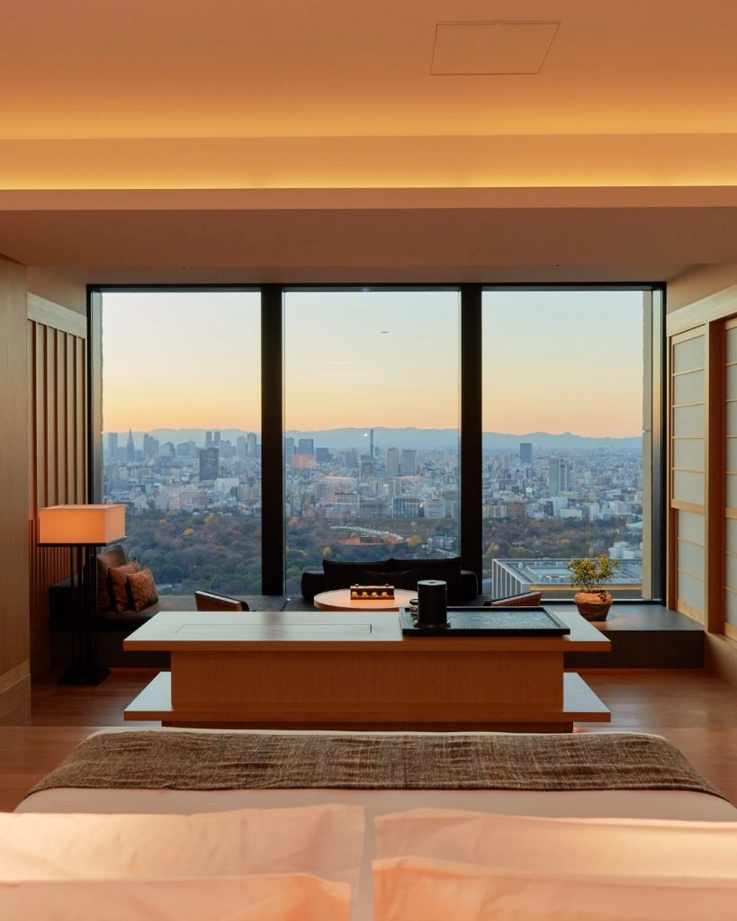 We don’t pick favorites. But we will tell you which hotel has the best view. Aman Tokyo gives otherworldly views of the city from its 38 stories on top of the Otemachi building, and prime location in the financial district. A hotel with a view in Tokyo should be really tall. Aman is.
