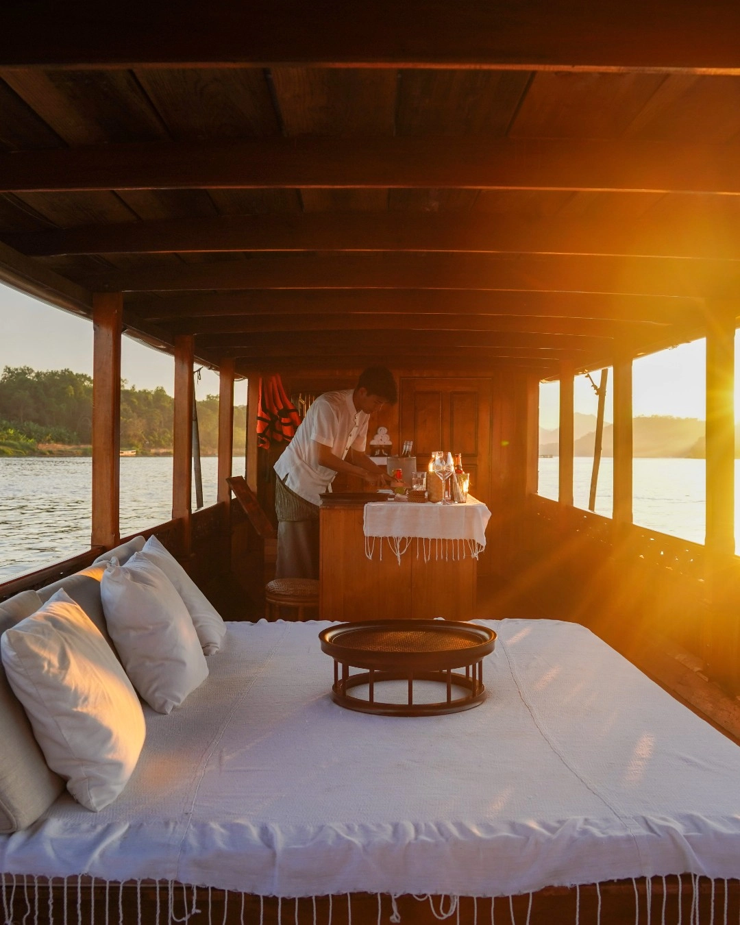 Amantaka offers a private Mekong River cruise daily, starting in the Tibetan Plateau and making its way to the South China Sea. You can expect to stop at the Pak Ou Caves and see the religious shrines tucked away. Another option is a picnic stop with your choice of a backdrop, like forested mountains. They provide cocktails and canapés with sunset hours for a serene ride with plenty of boats and people watching from the waters to witness daily life in Laos.