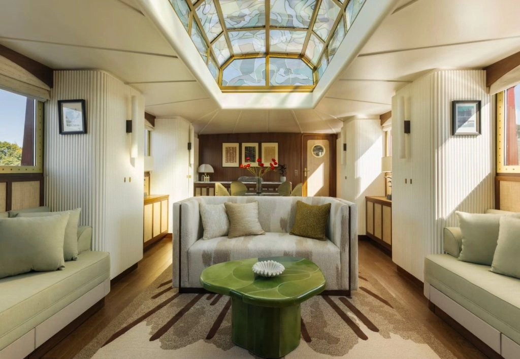 Chef Jean Imbert prepares a gourmet dining menu aboard the ship at the Monsieur Dior sur Seine cafe, including an afternoon tea service. As for restoration, five Dior luxury spa cabins offer treatments like Dior Sculpt Therapy to tone tissue and lift your skin and Dior Skin-Nutrition for glowy skin. If you find the fitness option most intriguing, open-air yoga and pilates sessions are available. Don’t worry; there will be time to lounge. The Relaxation Deck has a cold plunge, and the chairs you’ll be lounging on have the iconic Dior Toile de Jouy pattern in a summery coral. You can count on this fashion powerhouse to deliver a taste of an equally luxurious lifestyle.