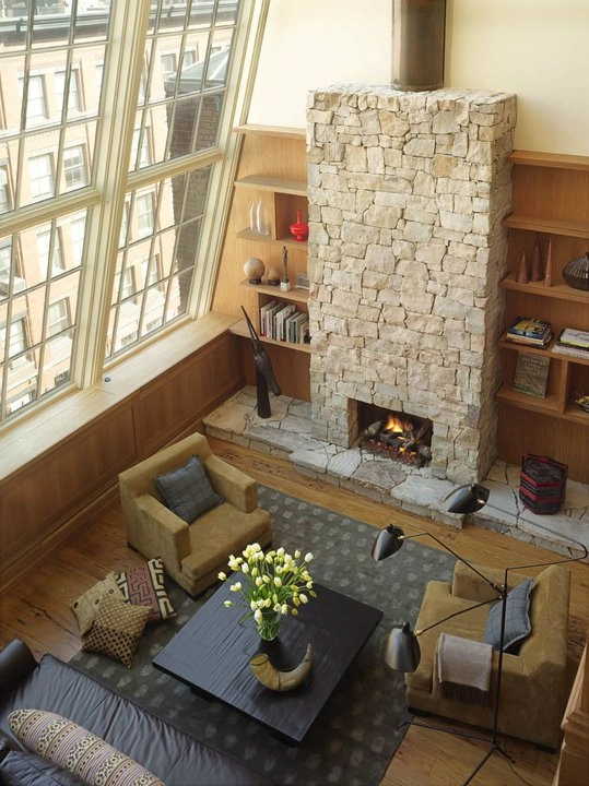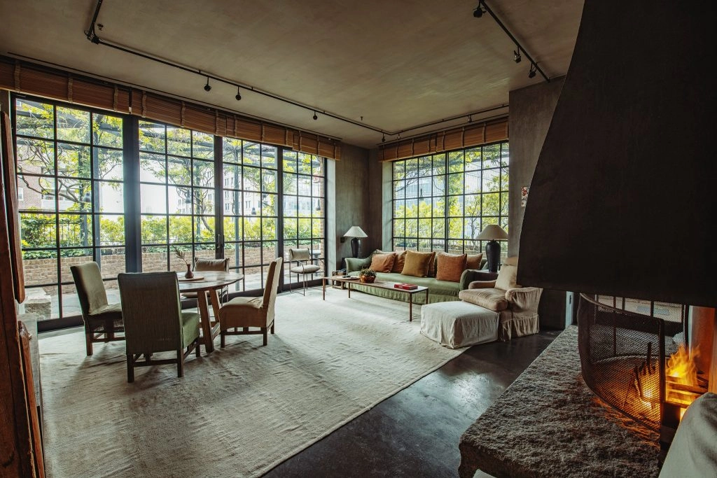 The fireplaces don’t end in the Drawing Room either. The TriBeCa penthouse has two terraces and includes an outdoor wood-burning fireplace. On the inside, the clay walls are lovely frames for the centerpiece, a large fireplace that adorns the naturalist wall. The design is somewhere between Japanese farmhouse meets a French chateau.