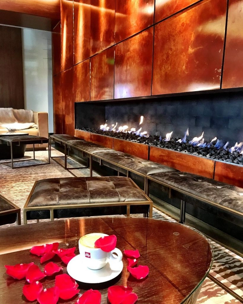 But the real star, or rather stars, of the show are the fireplaces. The lobby has one of those cool linear gas fireplaces that extends the length of the lounge with plenty of seating. It befittingly mirrors the modern, chic style of the hotel.