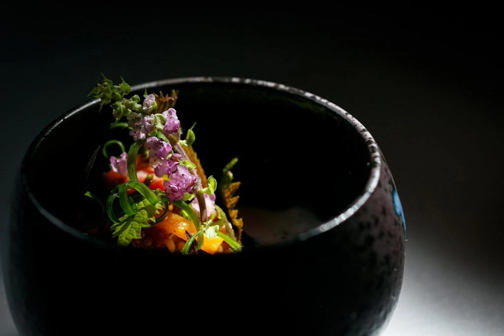 In the restaurant’s three different dining experiences — the Kitchen Table, the Salon and the Gallery — 10 to 16 courses are whooshed in one after another. Every course is a new surprise, whether it’s served on ceiling decor or emerging from fog.