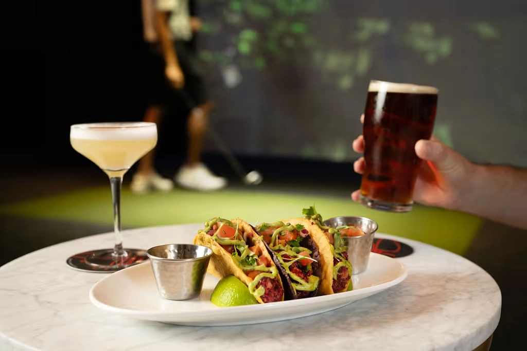 Once you’ve inevitably worked up an appetite (and a sweat), T-Squared Social’s casual all-day dining has everything you need to fuel up. Their small plates and sharers feature OG bar food favs. Think wings, sliders, and fries. But there are also some truly Scottish additions like haggis bonbons, caviar tattie scones, and veggie haggis tacos. Main dishes include fish and chips, a hot honey chicken sandwich, and a loaded hot dog, to name a few.