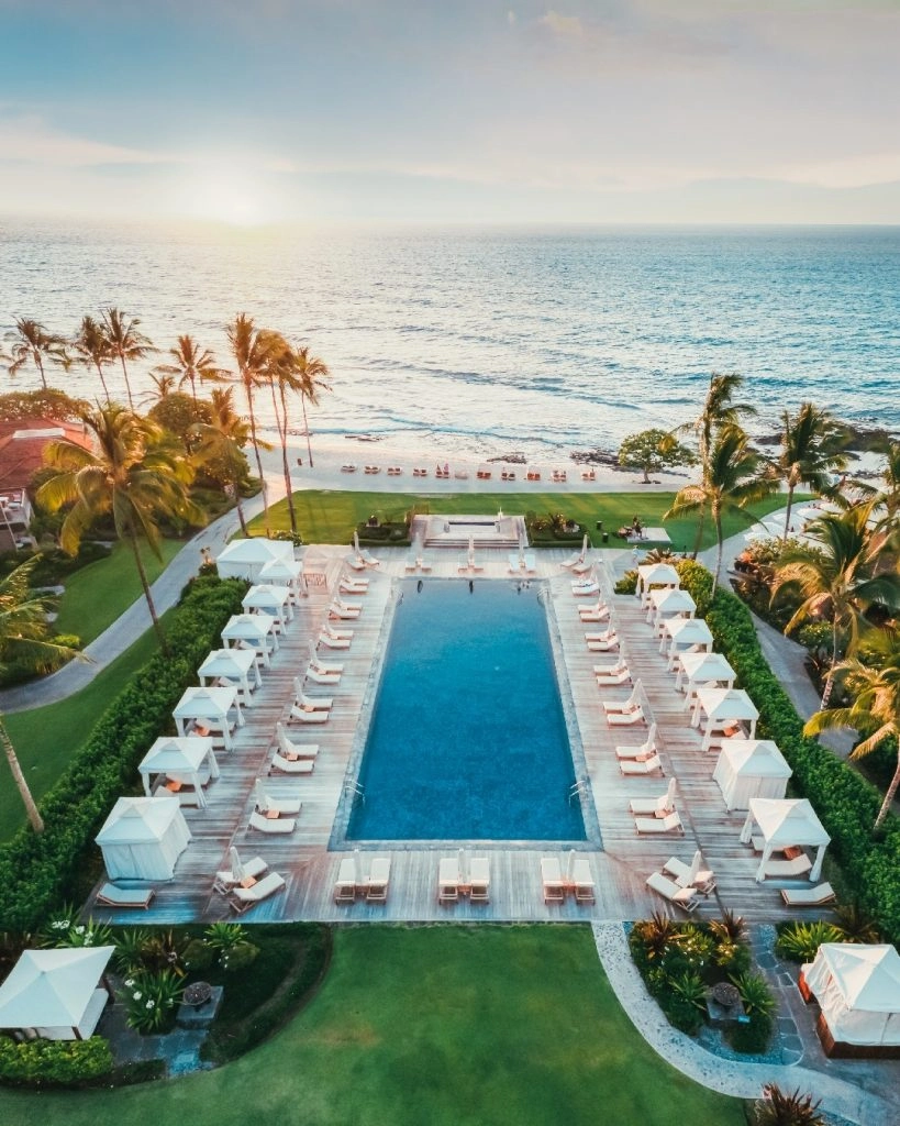 The Four Seasons Resort Hualalai is on the Big Island of Kona, on the north coast. It’s set right on the ocean, with white sand beaches and volcanic black lava landscape. To arrive at the Four Seasons Hualalai, you fly into Kona International Airport. Of course we assume though, that for Sofia Richie’s engagement, she flew private.