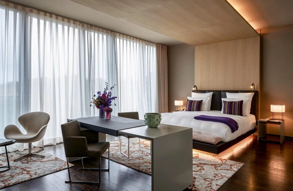 Keanu prefers SO/ Berlin Das Stue, which is the former Danish Embassy. Today, it’s a chic boutique hotel that has an intimate feel of a friend’s home (albeit a very nice one, with a big dinosaur skeleton in the entry). However, in Berlin there are a number of hot hotels to