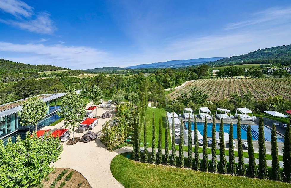 Villa La Coste is nestled in a landscape of rolling hills. The luxury hotel is part of the 600-acre Château La Coste, a wine estate and space for contemporary art and architecture. Villa La Coste offers twenty-eight villas, each with their own spacious terrace that overlooks the vineyard and valley. Some of the special complimentary services include wine tastings and art and architecture tours. The art and architecture walk features more than forty artists who designed their pieces for specific sites set along the property. Villa La Coste brings together star architects like Frank Gehry, Tadao Ando, and Oscar Niemeyer to create spaces that invite intrigue and curiosity to inspire a mood of exploration.