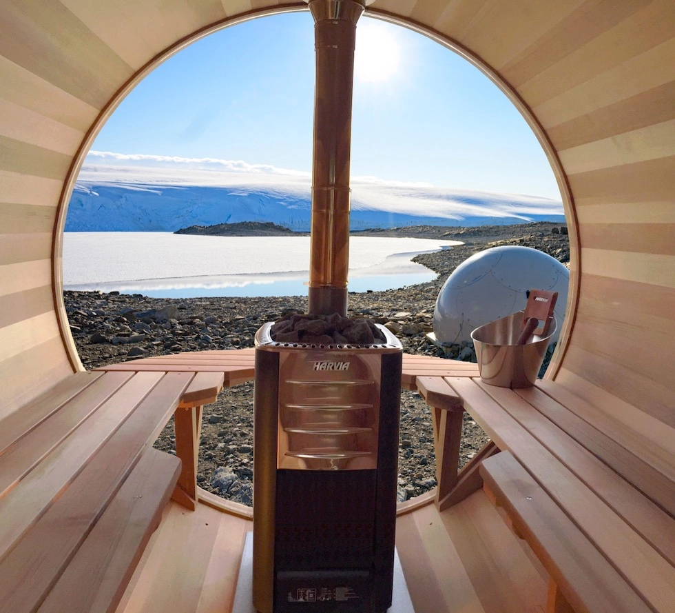 Whichaway Camp is another luxury option set on the banks of the frozen freshwater lake, Schirmacher Oasis. This accommodation also includes six state of the art pods including a communal lounge, library, and dining area. Additionally, it has a wellness space and sauna. This is a perfect way for the lucky couple to wind down.