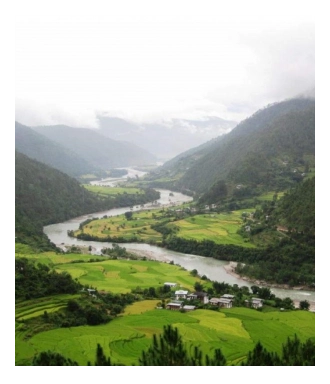 Continue your hike downhill to reach Khuruthang Village. Watch the scenery shift between rice paddies, village houses, and the verdant Punakha Valley.
