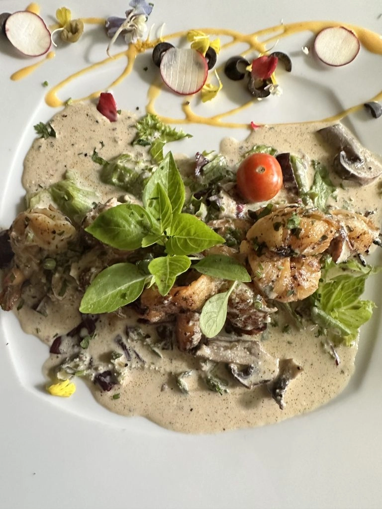 Intuitively, you would think that such a contemporary building would be out of place in the middle of nature. But instead, it both blends in and stands out among the trees. The building is tastefully done in a brilliant way to bring modern luxury to Dominica. There is local art on display throughout (which is mostly for sale), and a dedicated shop and gallery space on the second floor. The food is good; though not necessarily the reason you would come to Dominica. However, they’ve brought in a French chef who creates tasting menus in the more formal restaurant, along with more casual fare in the everyday.