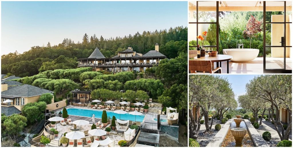 Let’s get real, nobody goes to Napa to drink water. You’re here for the wine. To immerse yourself fully in the world of wine while in Napa, you can visit wineries after wineries, or you can stay at a hotel that is actually in a vineyard. That’s the case of the Four Seasons Resort and Residences Napa Valley in Calistoga. The five-star property’s suites and residential villas all have views of the growing vines, but to try the stuff, you need to make your way to the onsite Elusa Winery, or Auro, the Michelin-starred restaurant. You can also opt for a romantic grove vineyard picnic if that’s more your speed. The resort’s Spa Talisa also offers grape-based treatments, including the Harvest Facial and the Harvest Grapeseed Ritual. Both treatments end with a complimentary glass of Elusa Cabernet Sauvignon.