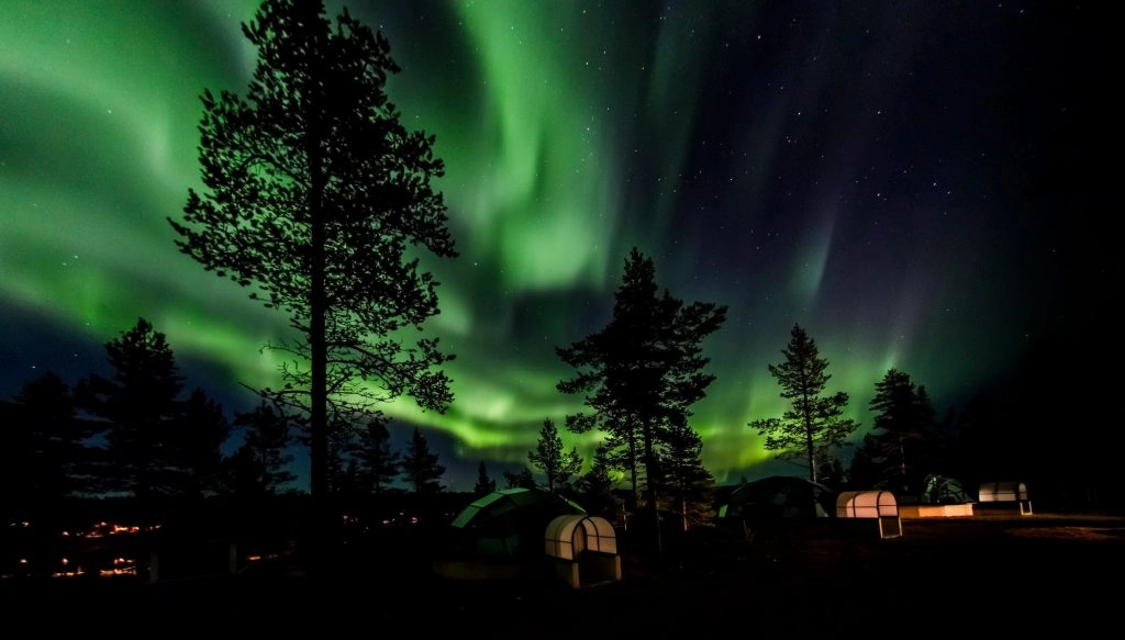 Don’t want to spend the night in the cold? Opt to comfortably gaze at the night sky from the comfort of your private glass igloo. Most glass igloos are equipped with a northern lights alarm system so you don’t have to worry about missing the show if you fall asleep. These glamping-like rooms offer basic amenities, but a once-in-a-lifetime experience.