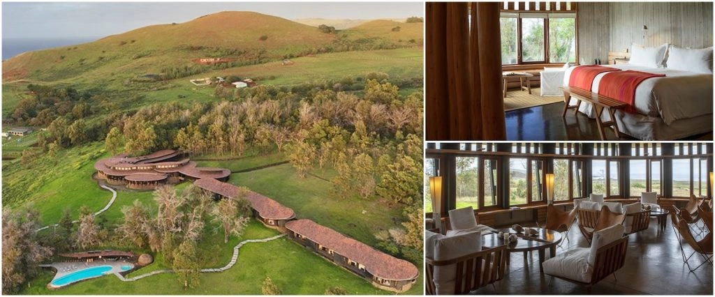 Explora en Rapa Nui, the 29-room luxury lodge outside of Hanga Roa, is the place you’ll want to stay at while on the island. Located on a hill and surrounded by trees and grassland, the property is secluded and offers striking views of the ocean. But, you can’t spot any Moais from the hotel — so you’ll need to leave this opulent cocoon to check them out.