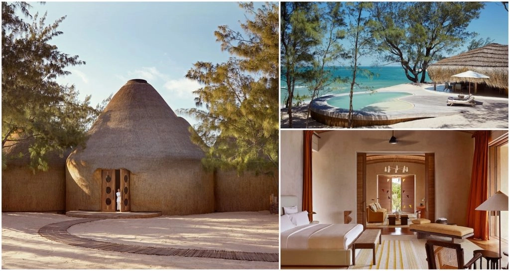 The exterior design and interior decor of each of the residences artfully mix traditional and modern creativity. The curved, undulating roofs are thatched in grass, the art on display is local, and many of the pieces of furniture reflect Mozambican aesthetics. That said, contemporary minimalism and trendy touches are present, too.