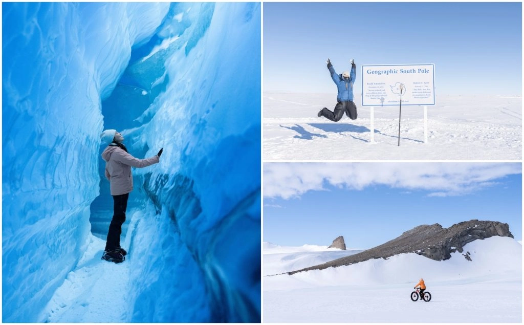 White Desert organizes an abundance of expert-led activities in Antarctica’s interior. Some take place around the camps, including ice cave explorations, champagne picnics on the ice, roped hikes, and abseiling adventures. Others require a flight onboard one of White Desert’s very own ski-fitted turboprop planes. That’s the case for a visit to an emperor penguin colony and a trip to the Geographical South Pole.