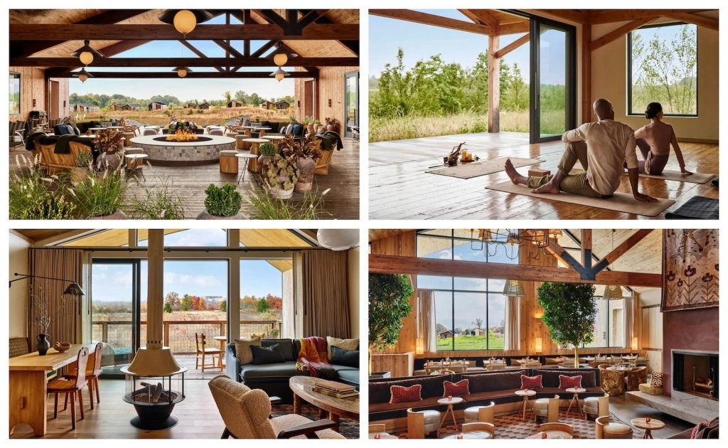 Just 85 miles north of New York City, Wildflower Farms combines luxury and wellness in a natural setting. There are 65 freestanding wooden cabins and cottages, as well as five suites on the property. All of the accommodations have outdoor patios from where to take the views of the wildflower meadows and Shawangunk Ridge. The decor in each is simple and elegant, with a focus on natural materials and mid-century style. The Thistle spa offers nature-inspired treatments and products, as well as unique wellness experiences, such as forest therapy sessions and ice-bath plunges. Beyond the usual sauna, outdoor hot tubs, and saltwater pool, there’s also a 3,000-square-foot fitness center and movement studio, tennis/padel courts, and several miles of hiking trails. There are daily fitness and wellness classes for those who want to have a health-focused Labor Day weekend. For those who prefer a food-focused long weekend, Clay, the onsite farm-to-table restaurant, should deliver.