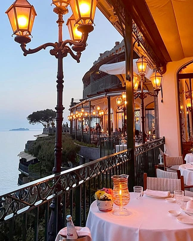 As many waterfront hotels do, JK Place takes inspiration from the sea. While still extravagant, JK Place is one of the best hotels in the Amalfi Coast for its chic design that’s a bit more low-key with a residential summer getaway feel. Soft yellows and blues can be found in the tasteful suites and exaggerated canopy beds are surrounded by flowy fabric to match the drapes. At JK Place, you feel more like a guest in your stylish friend’s home than you do feel like you’re in a hotel. Except unless your friend has stunning views and mad skills in the kitchen, at JK you dine on gourmet Italian food with gorgeous views.