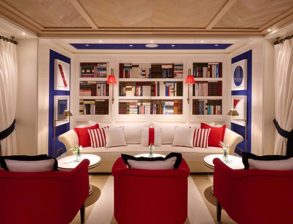 Arev Saint-Tropez is what happens when Riviera elegance gets a lively 60s-70s remix. This property is designed as a mini-village by local architect François Viellecroze, with each room individually designed by Luis Bustamante. The sun-baked reds, maritime blues, and yellows channel traditional Tropezian energy paying homage to the town’s seaside roots, without ever veering into kitsch. At the heart of the experience is the revived Strand Restaurant. They serve Mediterranean dishes using whatever the local markets are excited about that week. For your more spirited moments, there’s Q’s Bar, a champagne lounge that also serves craft cocktails, and a laid-back pool bar for when you’re in the mood for something cool and casual.
