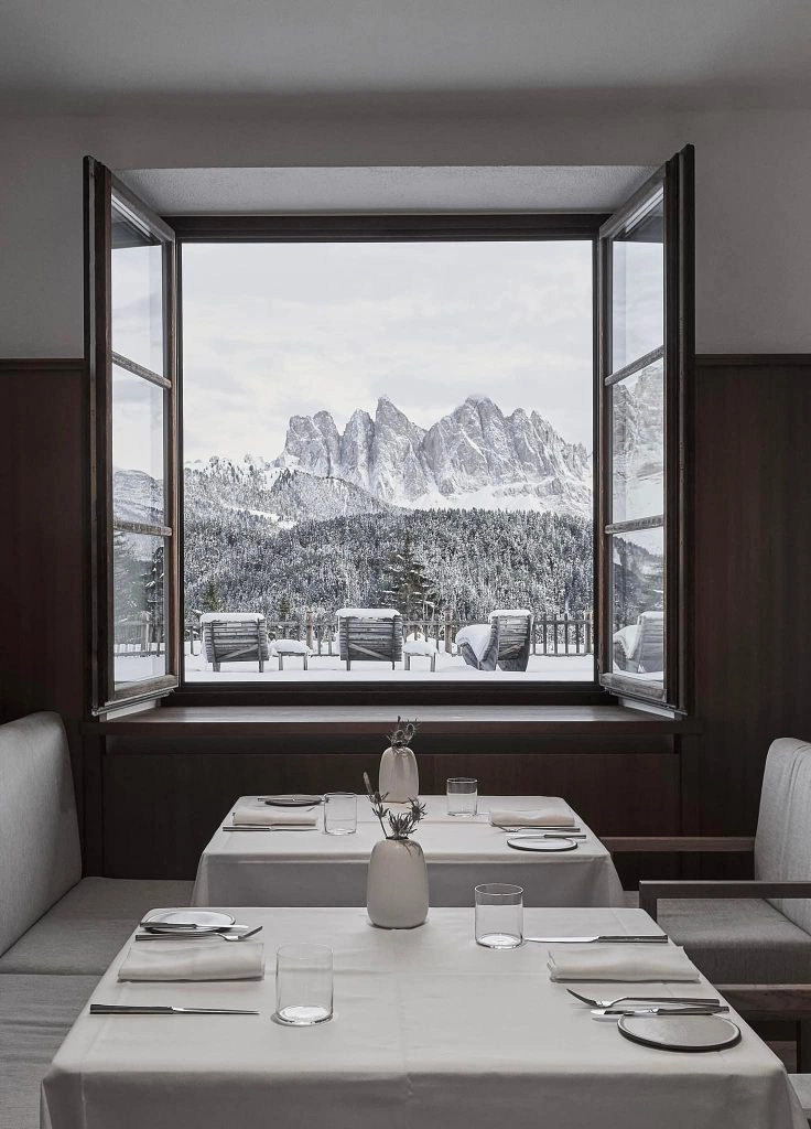 For many years, there wasn’t an up-to-standard five-star ski resort in the Dolomites. That changed when Rosa Alpina entered the arena. True to the authentic Italian style of the region, Rosa Alpina is family-run, but also part of the Aman resorts coalition. In other words, the best of both worlds. St. Hubertus, one of the hotel’s four dining options, has earned its three Michelin stars. Chef Norbert Niederkofler‘s curated menu of local, fresh ingredients brings a taste of the mountains to the Rosa Alpina’s welcoming accommodations.