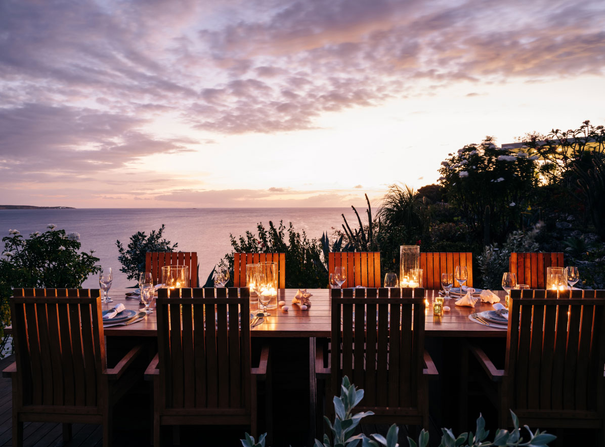 - Full-board breakfast, lunch, dinner and snacks with private chef + staff