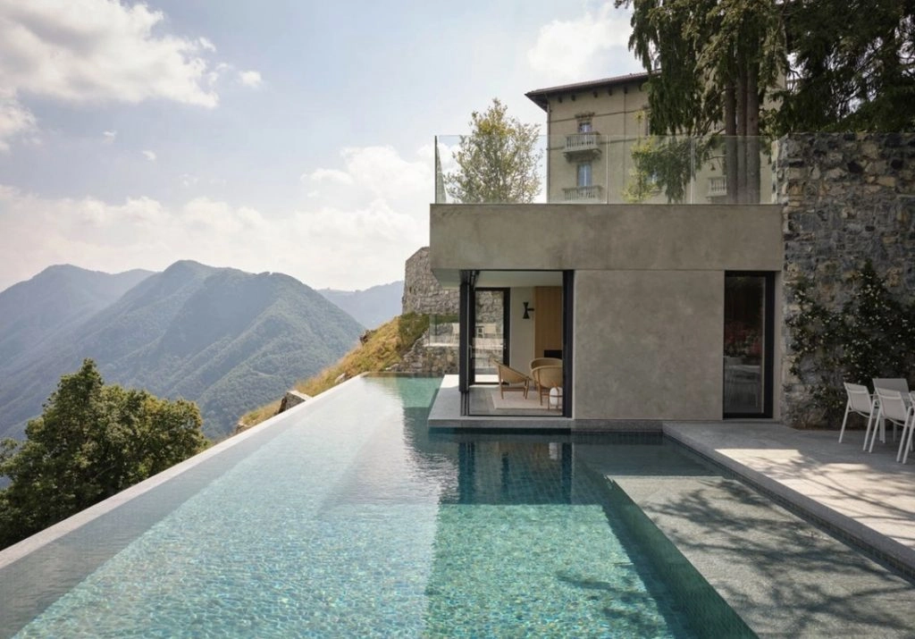 Modern Art Nouveau isn’t exactly what everyone thinks of when they think Lake Como. However, Villa Peduzzi is able to blend the 1901 villa with it’s modern amenities, like its infinity pool for days. This is all because of architect Andrea Meirana, who helped restore the original building and redesigned the modern portions. The new double terraces and the view straight down the lake integrate the surrounding environment with the historic villa. While this is clearly a modern villa, many of the hundred year old Liberty frescos were also restored.