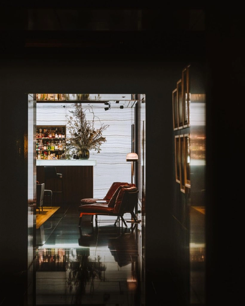 Those dark polished woods are a theme throughout the hotel and are prominent in the rooms too. I’m normally all about white interiors but I really love the Bulgari rooms. I’ve stayed in entry-level rooms as well as suites, and they are all deeply luxurious and spacious. The next level up from entry is when you get your private dressing room that leads into the large bath. It’s sexy as heck when you are in the rooms, and the furnishings are top-of-the-line. They spared no expense on every single inch of the guest rooms. The furniture is custom-made and I especially liked the bars that were styled as old-fashioned travel steamer trunks.