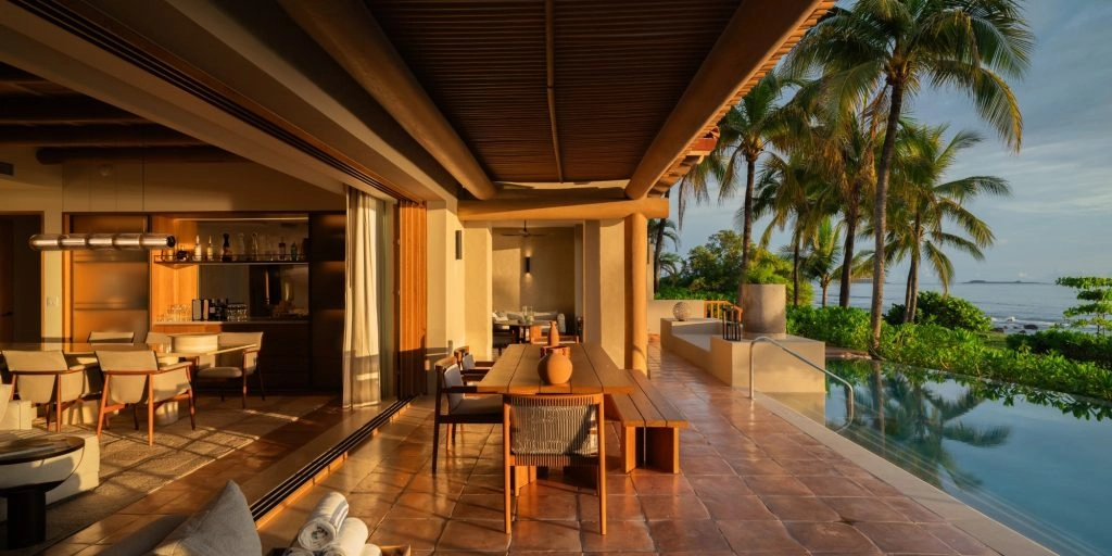 120 rooms, suites, and villas feature handcrafted furniture, arched courtyards, and artisan tiles. And, raising the bar entirely are the eight new beachfront villas. Each has a private plunge pool, direct beach access, and privacy. For the utmost in luxury, choose the Presidential Villa, which feels like a living gallery of contemporary Mexican design. It’s rare to see design this thoughtful in a property of this scale. It’s filled with textiles by Caralarga, ceramics by Encrudo and Perla Valtierra, and sculptural woodwork by Casa Bobadilla.