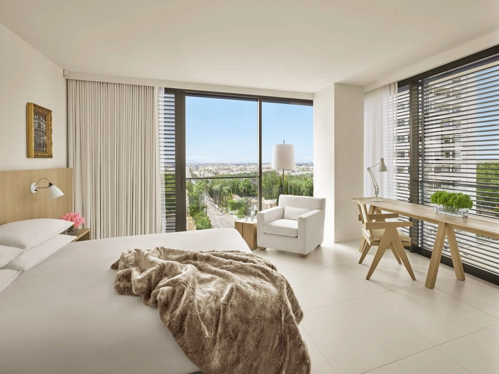 The West Hollywood EDITION hotel is an ambitious $300 million project in the heart of West Hollywood. And quite frankly, WeHo really needed an upgrade to its hotels. Yes, there’s the famed Chateau Marmont and Sunset Towers that are the iconic anchors. Sign us up for drinks and a night out there any day. But if you’re into true luxury accommodations, the rooms look all partied out and somehow channel that Burning Man feel.