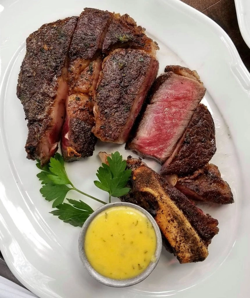 The perfect meal here will include the prime rib French dip as an appetizer — you know, to wet the palate. Just the sauce itself is worth it, and almost secondary to the prime rib. Of course, you can go prime rib for your main. However, then you would miss the double Waygu smash burger with a sunny side up egg, dripping egg yolk on top. The steaks also shine, where a filet or ribeye are never a bad choice. Like the French dip is an essential starter to share, the sundae bar should not be missed to end the meal.