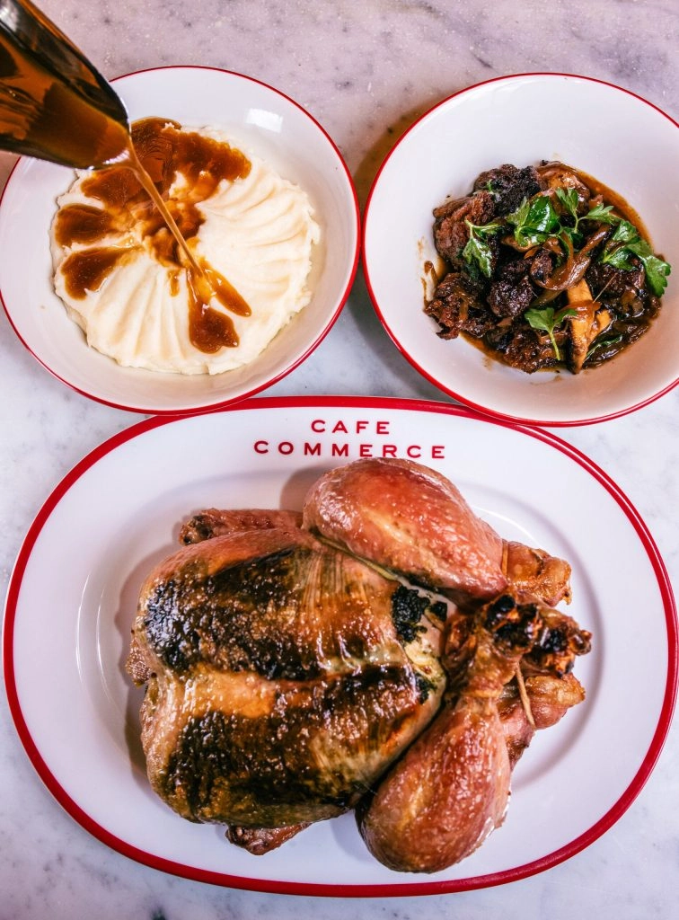 You know the saying “if it ain’t broke, don’t fix it”? Well, Cafe Commerce has made sure its menu delivers innovative creations while not straying from its “New American” roots. Making a long-demanded second act are Moore’s 20-herb salad, sweet potato tortelloni with pomegranate and brown butter, and of course, his signature roast chicken that was once dubbed “the best roasted chicken in New York.” Yeah, it’s basically culinary royalty. And one word to the wise: save room for dessert. Moore’s mouth-watering four-tiered cakes are already making the rounds on Instagram. He’s revived his fan-favorite coconut cake, and even added a towering birthday cake of rainbow-sprinkled deliciousness.