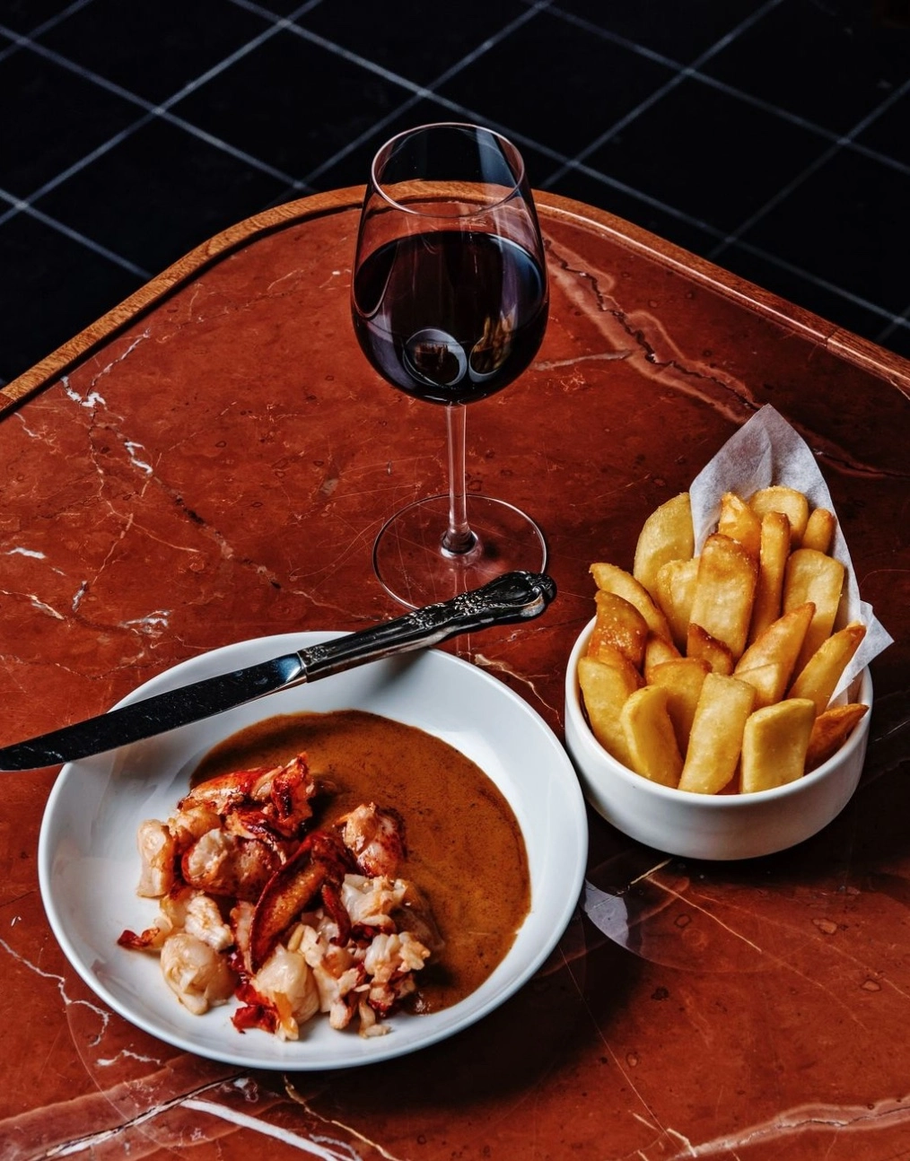 The scallop crudo was simple, clean and perfectly executed, with just the right amount of gremolata on top. I also had a soft shell crab special that was served on rosti with light cream sauce with trout roe that I would go back for in a heartbeat. I hope this review keeps it on the menu as long as crabs are in season. On my wish-list for next time is the lobster au poivre. The lobster is pure meat, out of the shell, and in a rich au poivre sauce, served with thick-cut homemade steak fries. The other dish I saw that looked interesting was an arroz a la plancha. Once again, it sounded straightforward, but in execution the rice was crispy and topped with mushrooms and cheese.