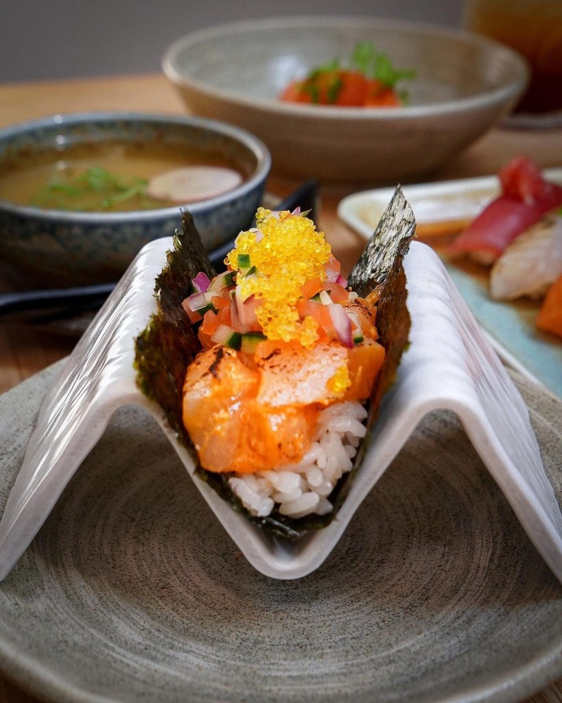 We then added a warm course of the shrimp dumplings and their signature fried chicken. The dumplings were good enough but the fried chicken was the one standout of the meal. They know their way around a deep fryer at Domodomo. Keep that in mind for later as I go into the hand rolls.