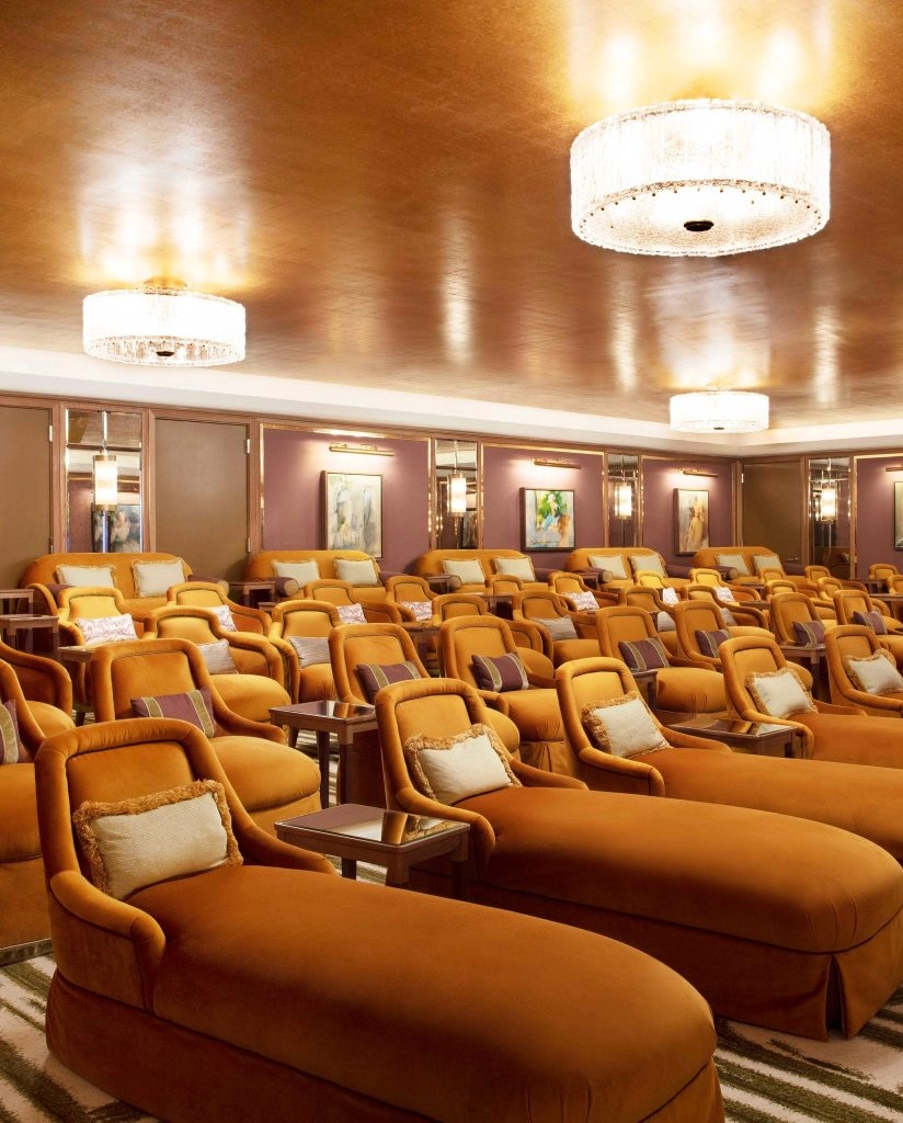 The obvious reason to go to the movies is to see the film. But that alone doesn’t make the experience. Fouquet’s takes this into account, by bringing glamour back to cinema (cue song: Let’s Go to the Movies from the Annie soundtrack). You’ll either start your experience with a three-course prix-fixe dinner at the hotel’s restaurant, or if you opt for drinks before, you’ll have two drinks and light bites at Titsou Bar. You’ll have approximately an hour and a half to relax and enjoy the art deco-inspired ambiance of the hotel before your viewing.