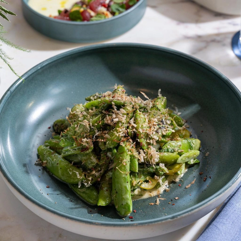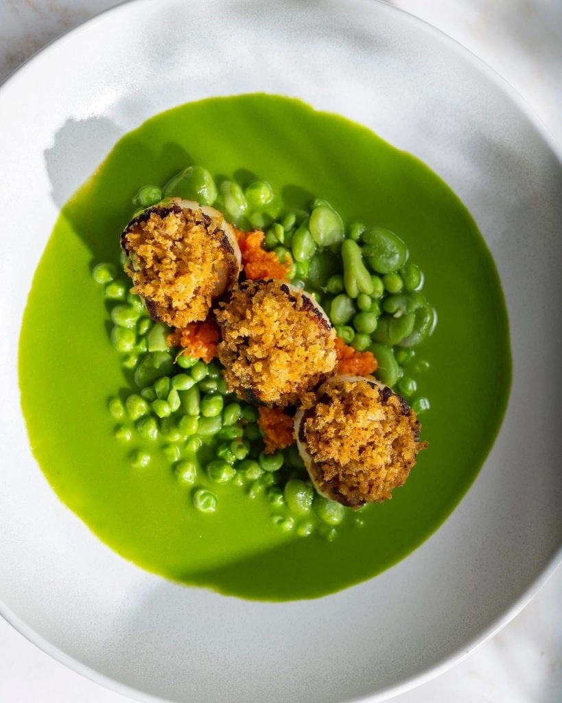 The menu is vegetable-forward, which especially shines through in the small plate courses. The snacks and small plates, which aren’t very small, are hands-down the stars of the menu. I would come back just to nosh on a healthy selection of the starters. The fava and English pea fritters had a light-as-air aioli and the sugar snap peas were in a hearty buttermilk dressing.
