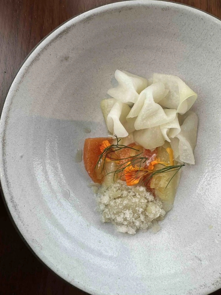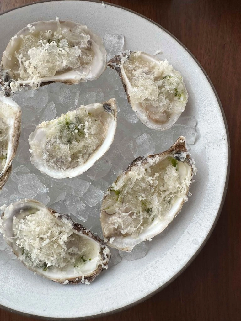 The oysters were a Queen’s Cup varietal I’ve never had before, in a light sand and cream shell. I savored every single essence of the green tomato horseradish granite that perfectly topped the oysters. I’m pretty certain this will make my list of favorite bites of 2024.