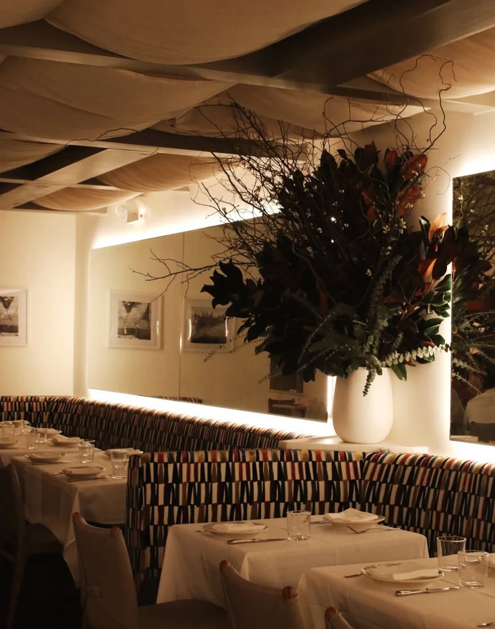 There’s something to be said for the inheritance of a good room. The previous restaurant, Periyali, occupied this space for nearly four decades. While Opto is its unique thing entirely, with its strong start, it has a shot to establish its own legacy. The design, overseen by Glen Coben of Glen & Co. (the firm behind Gabriel Kreuther, Carbone, and Francie Brooklyn) leans into clean and modern, yet warm. There’s just enough texture and pattern, subtle colors and fabrics that drape the ceilings and elevates the scene. There is something about the vibe that feels Sex & The City from the early aughts.