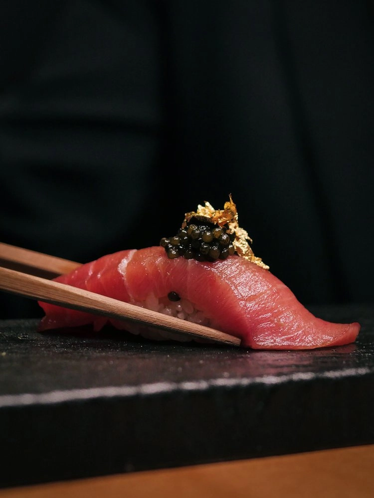 We opted for the 15 courses, which are actually served to you in 6 courses, so this isn’t a long drawn-out meal. It’s also the reason why this could be your go-to place for easy omakase any night of the week. The meal started out with an oyster with roe, then a second course of snow crab soup. Every single piece of fish is crafted with the right lemon and fleur de sel or the perfect dot of jalapeño oil. I had a million likes and don’t likes that I conveyed to Chef, and he happily worked with me. There were so many highlights in the 10 pieces of my evening. The sablefish with a chili oil concoction, the toro with caviar and gold leaf, and the fluke with lemon salt were just a few. Everything was interesting, and nothing was weird that I had to wonder what the heck I was eating.
