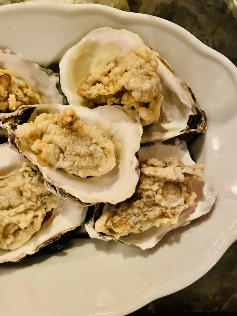 Highlights include raw or fried oysters. We say just go for it and get both; the fried oysters are each nestled in the perfect amount of homemade tartare that is more pickle than mayo. They smell so good that guests sitting next to you will probably be inspired to order them too. In fact, FOMO will rule what you order, and the menu is compact enough that with a group of four you can get through most of the evening’s selections.