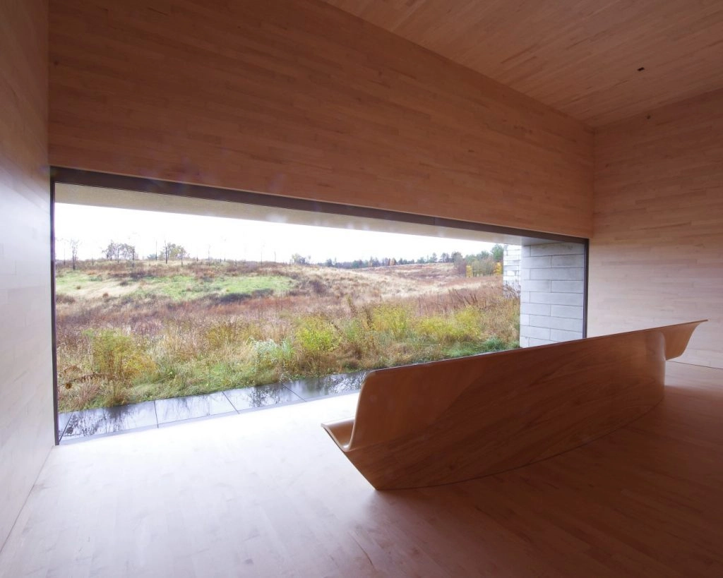 Glenstone’s architecture has an equal presence to the art it houses and the nature it’s surrounded by. Thomas Phifer and Partners created the minimalist design that allows for lots of space between artworks. Large windows let in natural light and overlook the vast landscape. There is an open patio at the forest’s edge where visitors can experience the outdoors while dining. The Pavilions surround an area of water where plant life changes with the seasons.