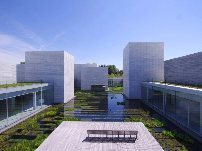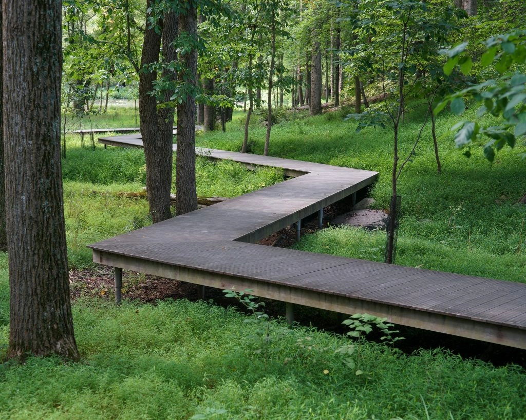 The landscape spans nearly 300 acres and seamlessly incorporates the architecture and art. For instance, he area includes a variety of paths, meadows, streams, and forests, with outdoor sculptures spread along the way. In addition, Glenstone has its own Environmental Center which spearheads the museum’s sustainability agenda.