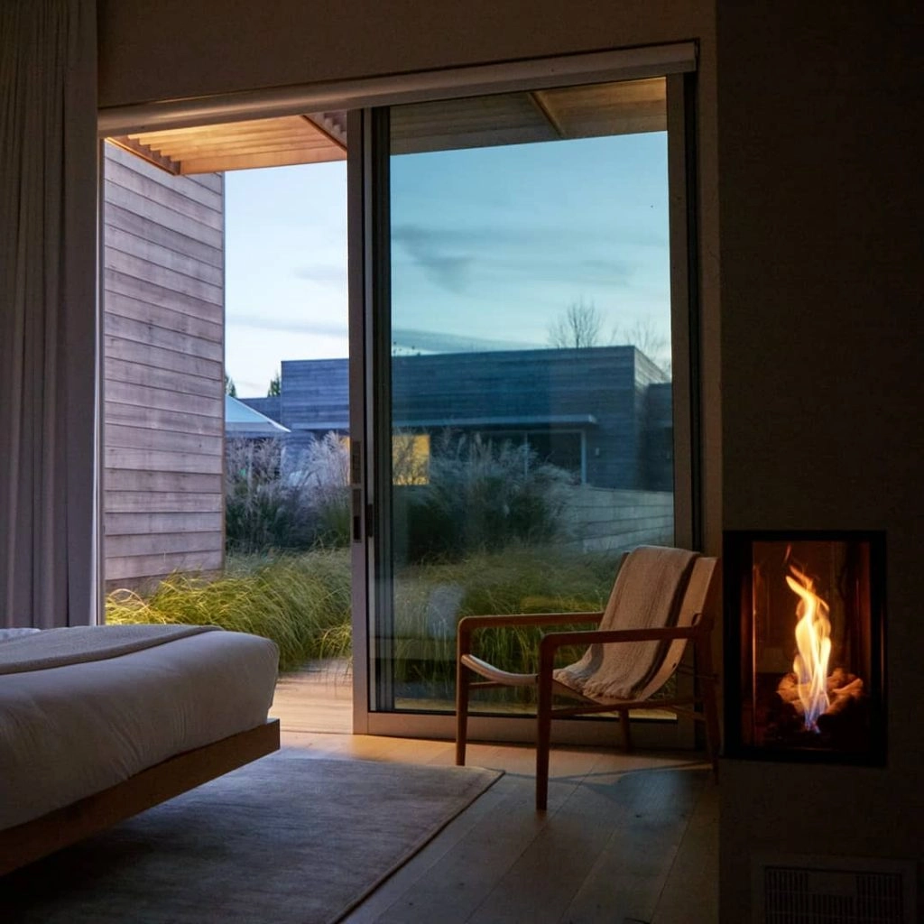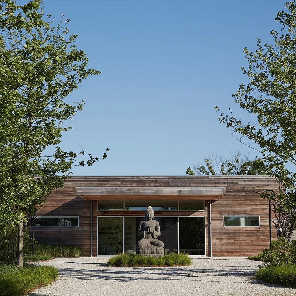 Shou Sugi Ban House spans five acres in Water Mill, New York, just 90 miles away from New York City. The surrounding area is sought after for its pristine beaches, charming towns, historic houses, and relaxing vineyards and farmland. The property’s landscape takes inspiration from the transcendental quality of wabi-sabi, a Japanese philosophy and aesthetic. This Hamptons yoga retreat has a minimalist beauty, and it’s all about the healing properties of the natural world.