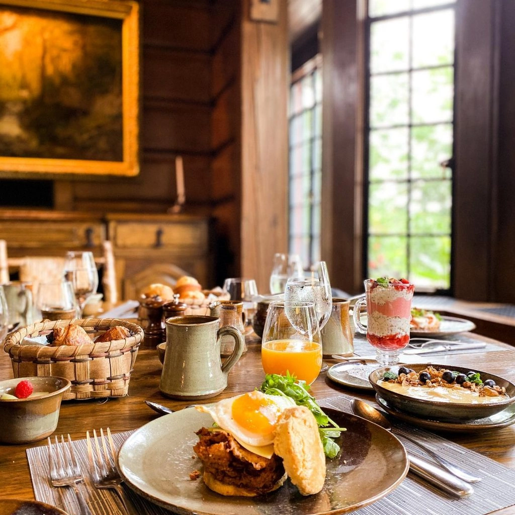 It’s not a surprise that The Point is one of the buzziest hotels right now. The Gilded Age rustic decor bring guests back to a simpler time, but not without the opulence. The food also gets our seal of approval. Breakfast and lunch can be a la carte and casual, but dinner is no joke. All guests gather in the dining hall for a meal that is months in the making.