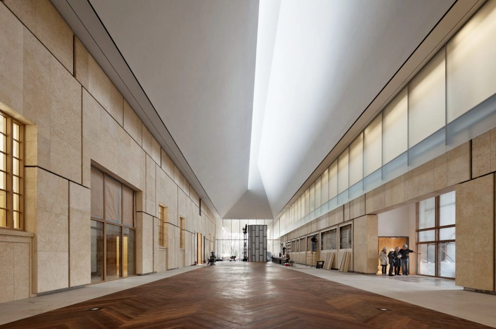 In 2012 The Barnes Foundation moved to its current home along the Benjamin Franklin Parkway. Tod Williams Billie Tsien Architects designed the L-shaped two story building with walls of fossilized limestone. A lightbox running the length of the building allows light into the many open spaces and courtyards inside. As a result of moving locations the reach of their educational programs vastly increased. For example, the foundation now reaches around 12,000 school children a year.