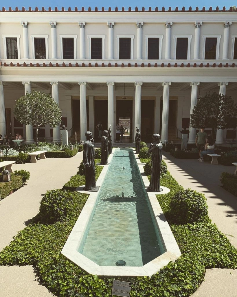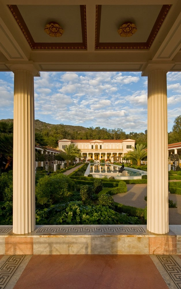 The second campus, The Getty Villa, is located in Malibu along the Pacific Coast Highway. The Getty Villa opened in 2006 after major renovations and is both a museum and education center. The Campus is modeled after “Villa dei Papiri” (The Villa of the Papyruses) located in Herculaneum, Italy. But additional inspiration was taken from other ancient Roman buildings and towns to make up its architecture and landscape. For example, the gardens include herbs and shrubs that would have been found in ancient Roman homes. The collection is made up of ancient Greek and Roman antiquities that span a 4,000 year range. However, there are also changing exhibitions on the second floor that present temporary exhibitions with artwork from around the world. The large garden includes a reflecting pool, walkways, and a view of the Pacific Ocean.