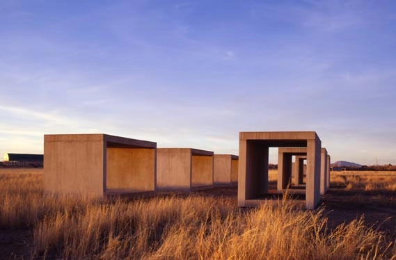 After experimenting with 101 Spring Street, Judd began buying properties in Marfa, Texas in the 1970s. La Mansana de Chinati/The Block, was Judd’s residence and studio. The buildings are some of his first forays into architecture and exhibit his early works in addition to his library. The Studios, Judd’s downtown spaces include an architecture studio, art studio, and The Cobb House and Wythe building. These spaces have Judd’s paintings and furniture plus an extensive collection of work he bought by artists and designers. In addition, Judd created his own museum in Marfa, called The Chinati Foundation. This museum houses a number of large scale permanent installations created by a select group of artists.