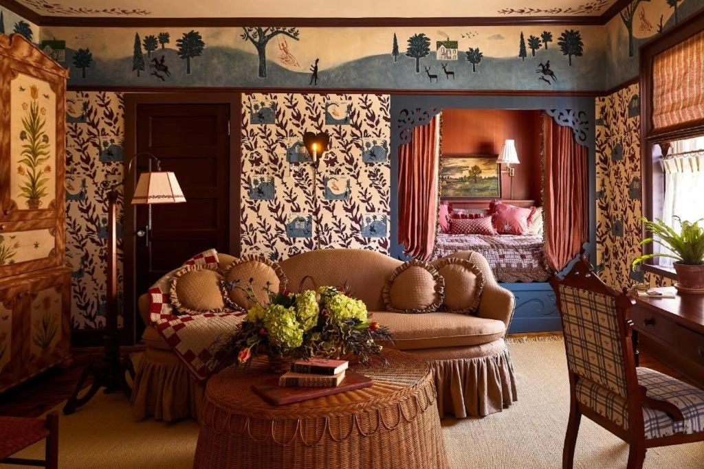 Does watching Miss Marple or Midsummer Murder give you a warm and fuzzy feeling inside? Do you look longingly at the thatch-roofed, rose-covered cottages on the screen and think, “I wish I could live here”? If you answered yes to both these questions, we know exactly where you should take your next weekend gateway. The recently opened Six Bells Countryside Inn, located in the small town of Rosendale in New York’s Hudson Valley, is cottagecore at its finest. The decor of the 11-room inn is a comforting mix of Greta Gerwig’s Little Women and Beatrix Potter’s universe. But, without the talking animals, of course.