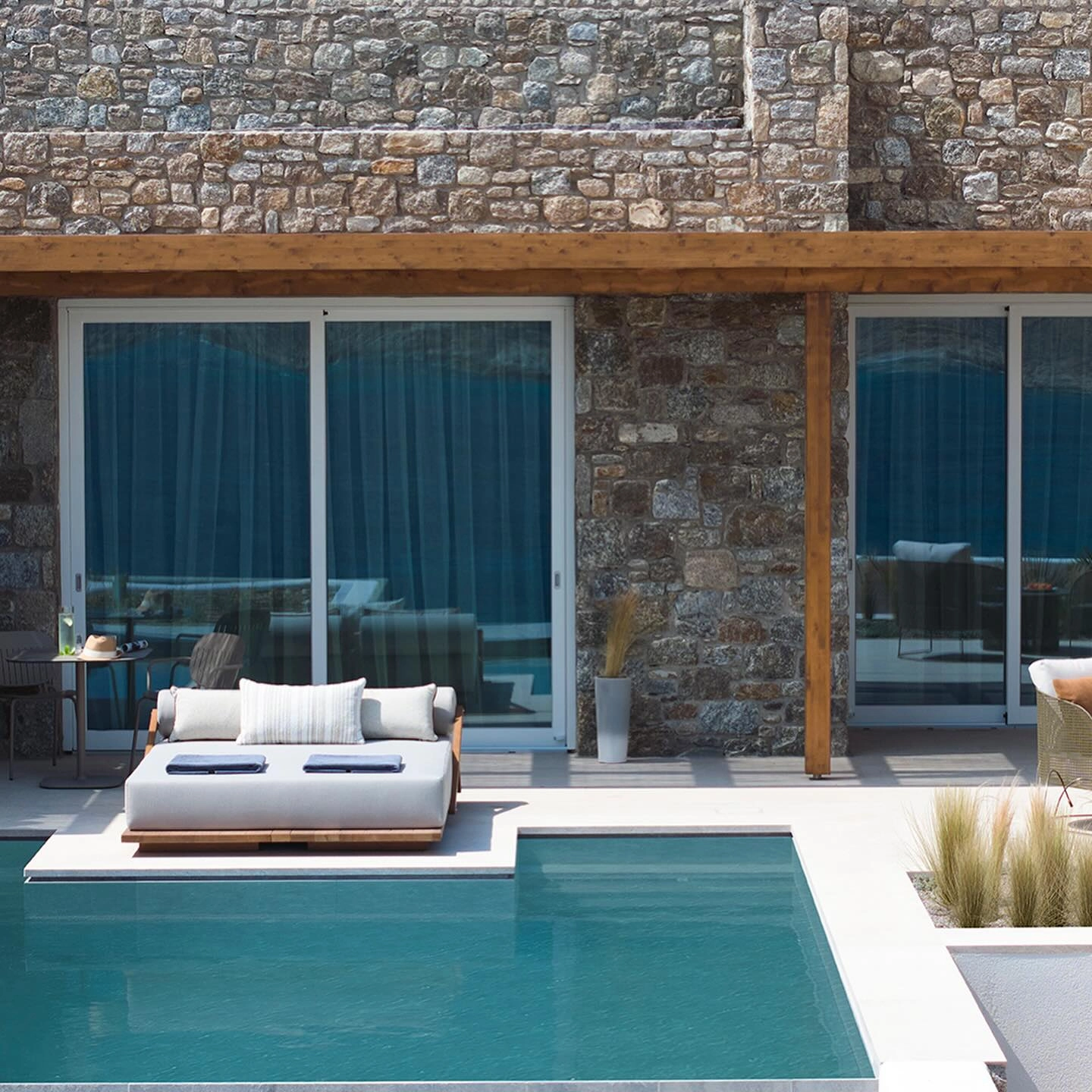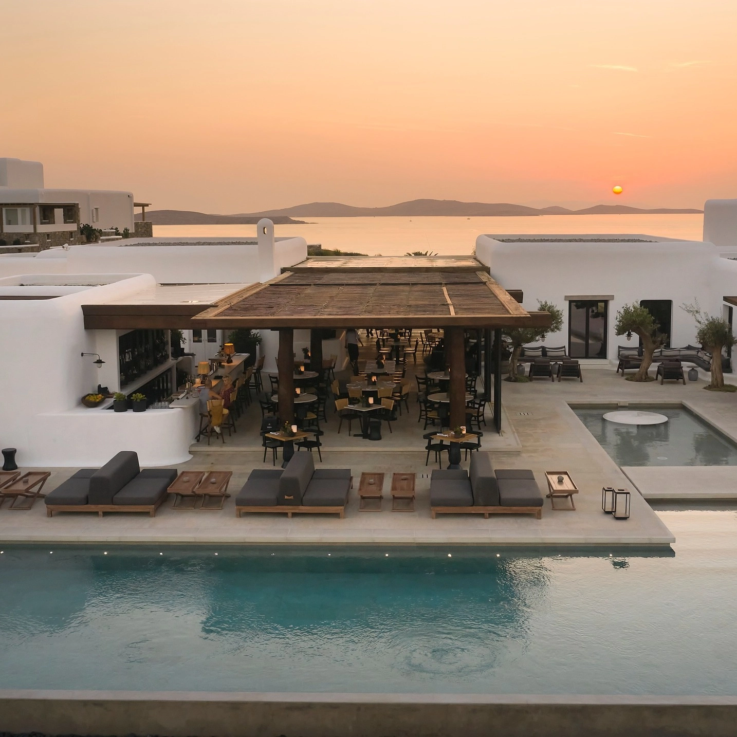 Barefoot luxury is synonymous with Bill & Coo Coast Suites. You’re surrounded by panoramic sea views only steps away from the private Bill & Coo Beach. Romance is in the air with dedicated honeymoon suites, an adult-only policy, and double sunbeds. A few exciting changes this summer include ten expansive new suites featuring terraces and pools and new award-winning Executive Chef Aggelos Bakopoulos managing CooZest and Beefbar Mykonos (one of our faves).