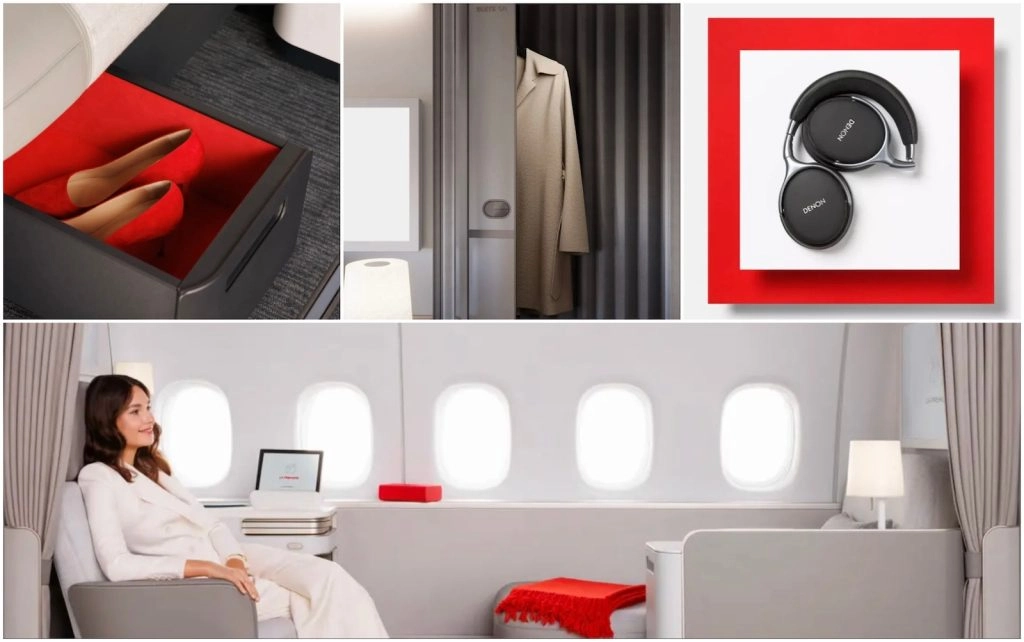 As you’d expect from the French, the new La Première suites are all about quiet sophistication – no gold trims or imitation wood grain in sight. Each suite features high-quality furnishing and materials in soothing, neutral tones. Delicate red accents, akin to a touch of lipstick on a woman, add some life and joy to the suite.